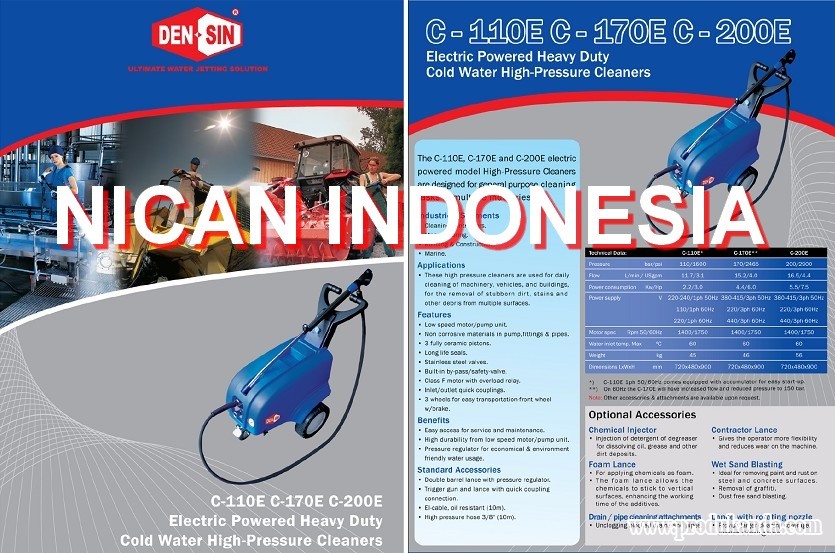 Dapatkan Spesifikasi Harga DENSIN C110E , C170E , C200E , WATER JET PRESSURE (110 BAR, 170 BAR, 200 BAR) Produk Terbaik dari NICAN INDONESIA spare part mobil