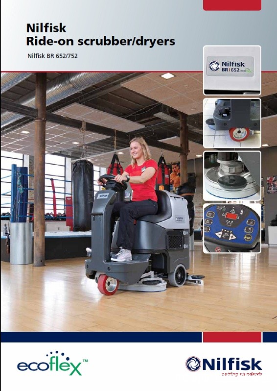 The all-new BR 652/ 752 series of compact ride-on scrubber/ dryers from Nilfisk-Advance represents a huge step forward in cleaning innovation. In fact, a new benchmark has been set that puts these magnificently designed and engineered units way ahead of the competition. Just look at the features. Super low noise level, an ergonomic and compact design that allows these machines to clean just about anywhere. Then there is the EcoflexTM green-cleaning system that controls the consumption of water, detergent and energy so effectively that real savings can be gained without compromising performance! And above all a totally new and patented scrubbing deck concept. Everything can be done just moving the steering wheel; as the machineturns, so too does the deck. Maximum efficiency and side skirts are no longer needed.